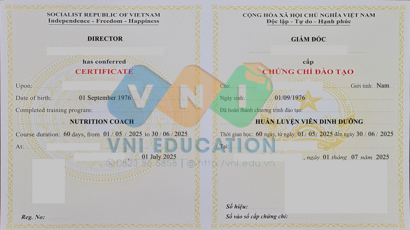 VNi Education hiện đang tuyển sinh khoá học Huấn luyện viên dinh dưỡng với các thông tin sau:
